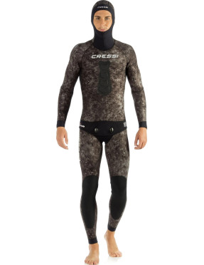 Neopren vytvořený pomocí exkluzivního nové cressi tmavé digitální přízračné kamufláže, počítačem navržené tak, aby kořisti ztěžovala vytváření jasných obrazů, a tím splyne nositel s pozadím. Předtvarovaný anatomický střih.